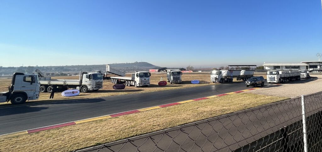 After the presentation, we went to either track or skidpan to experience the trucks. I went to the track first. Driven by the Hino instructor, we lapped following a pace bakkie. Using the adaptive cruise control, he took his foot off the accelerator and the Hino simply took over. At the end of the lap the pace bakkie stopped completely and, without any driver activity, the Hino stopped at the safe distance.