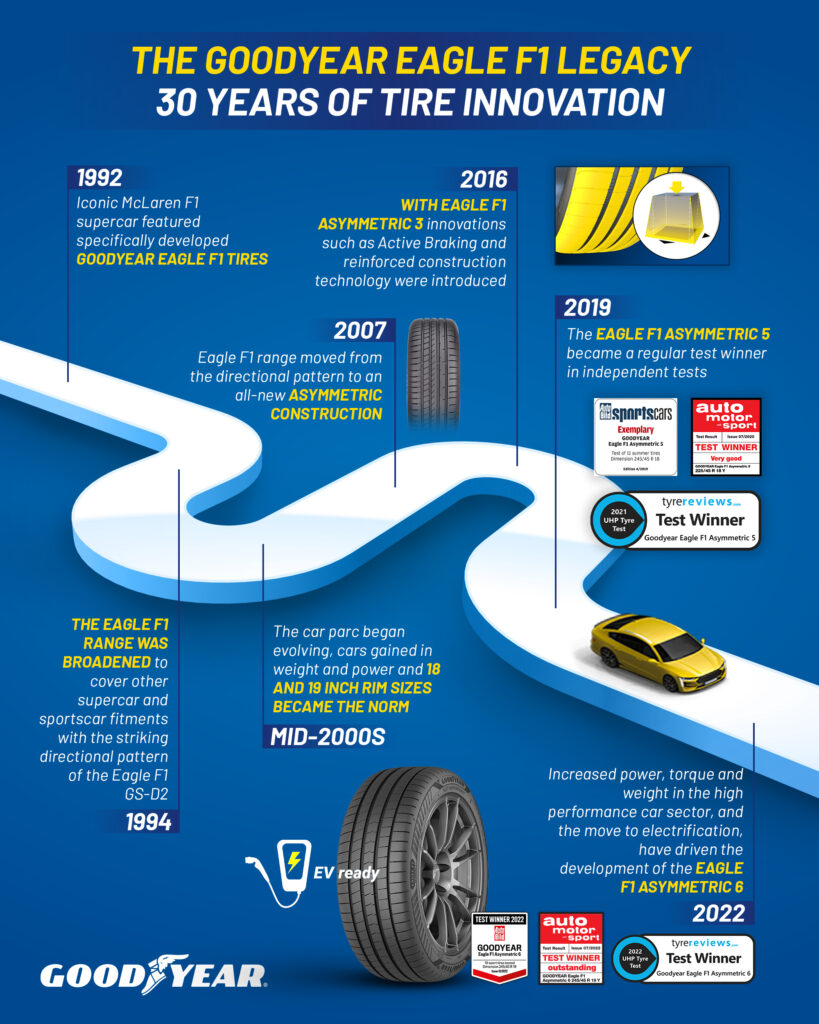 Shane Petersen, Director of Consumer Business, Goodyear South Africa said “Goodyear has a proud heritage of delivering innovative tyres to South African drivers for over 75 years. We now proudly present the Eagle F1 Asymmetric 6, the latest in our award-winning range of Eagle F1 tyres.