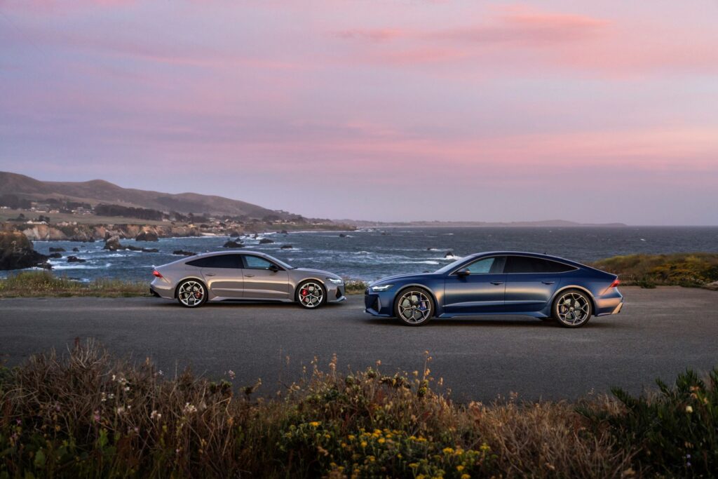 The new RS 6 Avant performance and RS 7 Sportback performance are available in a total of 16 exterior colours and, for the first time, metallic and matte Ascari Blue and matte Dew Silver are included. The performance models stand out with standard RS exterior components in matte grey, including the exterior mirrors, the front spoiler, the front side flaps, the side sill inserts, the roof rails, and the trim on the side windows and rear diffuser. A matte carbon/black styling package is also an option, in which the roof rails and trim on the side windows are black. The Audi rings and model name is available in the customer’s choice of chrome or black.